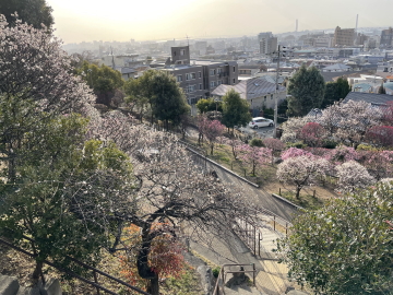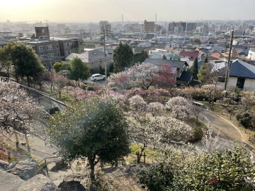 見頃は岡本梅林公園に比べて約2週間程度遅れます。約350本の梅の花が見られます。 |