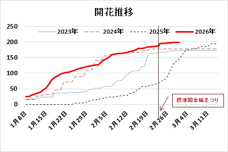温度が平年並みの場合、3月上旬が最高の見頃になります。 |