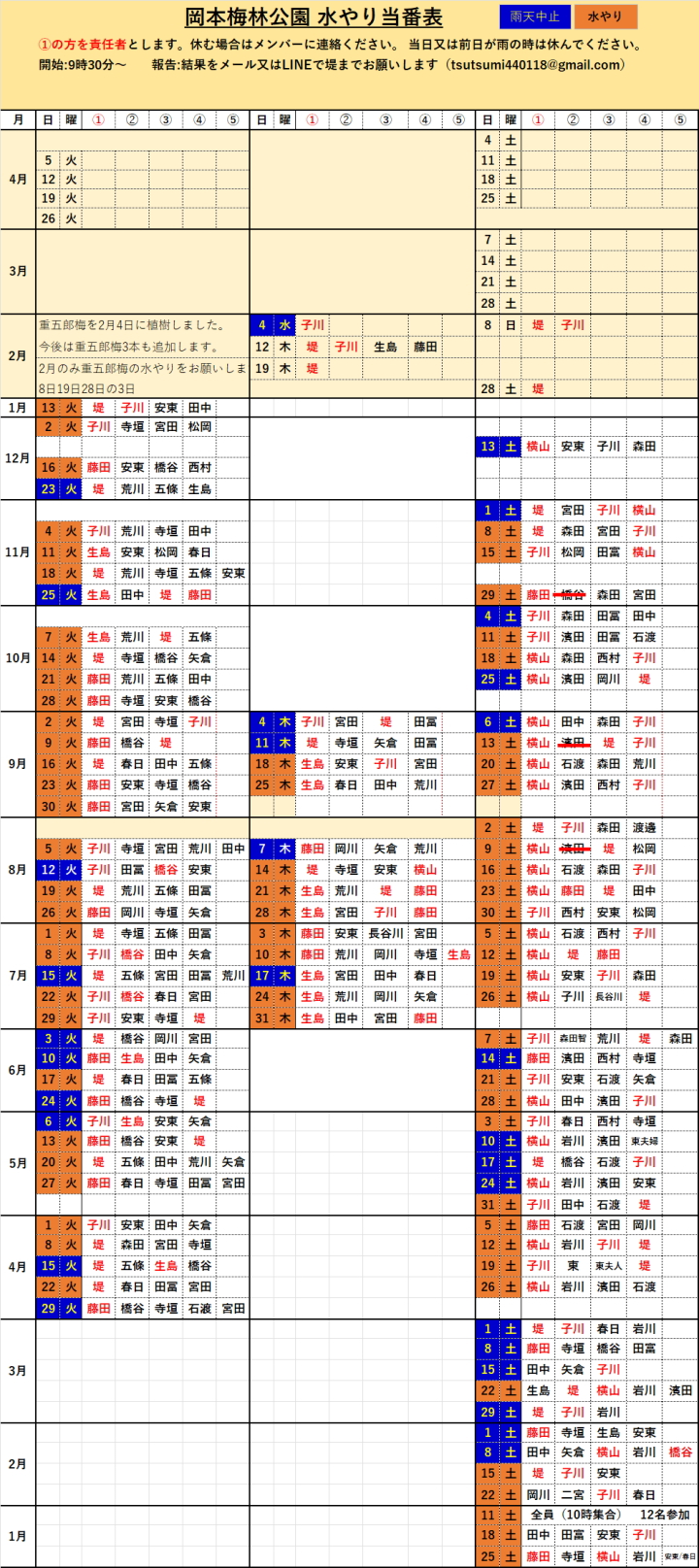 岡本梅林公園 今年度植樹梅の水やり 7月3日(木) |